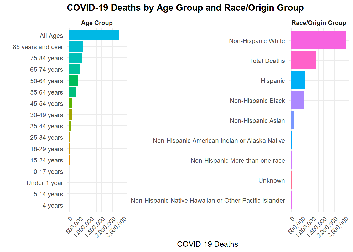 $ Race and Hispanic Origin Group : chr [1:6489] "Total Deaths" "Non-Hispanic White" "Non-Hispanic White" "Non-Hispanic White" ...